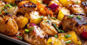 A vibrant, sweet-and-savory one-pan meal packed with juicy chicken, caramelized pineapple, and colorful veggies—perfect for busy weeknights with minimal cleanup…