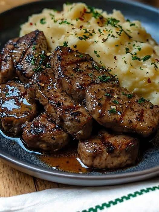 Plate the mashed potatoes, top with garlic butter beef bites, and drizzle any remaining sauce over the top. Garnish with fresh parsley.