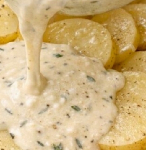 Where humble spuds surrender to slow heat and emerge transformed—silky layers steeped in a velvety cream bath, crowned with a golden Parmesan crust that shatters delicately beneath your fork. This isn’t scalloped potatoes. It’s scallopéd poetry: French technique meets farmhouse soul, all in one ceramic dish.Born from the alpine kitchens of Dauphiné but perfected in American homes, this dish understands a quiet truth: luxury lives not in truffles or saffron, but in patience. Thinly sliced potatoes—no mandoline required—nestle in a whisper of thyme-kissed cream, each layer drinking deeply until fork-tender. As they bake, magic unfolds: the cream reduces into a silken sauce, the Parmesan melts into a lacy, golden blanket, and the edges crisp just enough to contrast the cloud-soft center. Served steaming from the oven with a crack of black pepper? This is the side dish that becomes the reason for dinner. Why You’ll Love This Recipe→ Effortless elegance – No roux, no precooking—just slice, pour, and let the oven work its alchemy→ Texture symphony – Crisp golden top + meltingly tender layers + velvety sauce in every bite→ Crowd-whisperer – Disappears before the main course even hits the table (double the batch—trust me)→ Make-ahead grace – Assemble hours ahead; bake while guests arrive for hot-from-oven perfection Perfect for:• Holiday tables where you need one less thing to stress over• Sunday suppers that feel like a celebration without the fuss• Impressing in-laws who “know good potatoes” (this one converts skeptics)• Anyone who believes the best comfort food tastes like it took all day—even when it didn’t IngredientsServes 6–8 as a side)The Foundation:• 2 lbs (900g) Yukon Gold potatoes (peeled)→ Why Yukon Golds? Their buttery flesh holds shape while absorbing cream beautifully—no gluey sadness like russets can yieldThe Creamy Infusion:• 1½ cups (360ml) heavy cream, room temperature• 1 cup (90g) finely grated Parmigiano-Reggiano, divided (pre-grated won’t melt smoothly—grate your own)• 1 tsp fresh thyme leaves (or ½ tsp dried)• ¼ tsp freshly grated nutmeg (not powdered—grate whole nutmeg for floral warmth)• 1 small garlic clove, microplaned (optional but transformative)• 1 tsp kosher salt (plus more to taste)• ½ tsp freshly cracked black pepperThe Finish:• 1 tbsp unsalted butter, softened (for greasing dish)• Extra flaky sea salt (for finishing)• Fresh thyme sprigs (for garnish)Instructions1. Slice with intentionPeel potatoes. Using a sharp knife (no mandoline needed), slice ⅛-inch thick—about the width of a nickel. Pro tip: Keep slices uniform so they cook evenly. Place in a bowl of cold water as you work to prevent browning; drain and pat completely dry before layering (water = watery sauce).2. Butter the vesselGenerously butter a 9×9-inch ceramic or glass baking dish. Why ceramic? It distributes heat gently for even cooking without scorching cream.3. Layer like a proArrange potato slices in the dish in slightly overlapping concentric circles or a loose shingle pattern—do not pack tightly. Gently separate slices with your fingers to create channels for cream to flow between layers. This is non-negotiable: trapped steam = soggy potatoes.4. Build the cream infusionIn a liquid measuring cup, whisk room-temperature cream, ¾ cup Parmesan, thyme, nutmeg, garlic (if using), salt, and pepper until smooth. Taste it: It should be slightly overseasoned—the potatoes will mellow it as they absorb.5. Pour with purposeSlowly drizzle cream mixture over potatoes, starting at the edges and working inward. Tilt dish gently to help liquid seep between layers. Do not stir—you’ll disrupt the delicate layering.6. Crown and tentSprinkle remaining ¼ cup Parmesan evenly over the top. Tent loosely with foil (shiny side down)—do not let foil touch cheese or it will stick.7. Bake in two acts→ Covered (35–40 mins): Bake at 375°F (190°C) until potatoes are almost tender when pierced (a slight resistance remains).→ Uncovered (20–25 mins): Remove foil. Bake until top is deeply golden, edges are bubbling, and a knife slides through potatoes with zero resistance. If top browns too fast, loosely tent with foil for final 5 minutes.8. Rest with reverenceRemove from oven. Let rest 15 minutes uncovered—this is critical. The sauce thickens from runny to velvety; layers set for clean scooping. Sprinkle with flaky salt and fresh thyme just before serving.