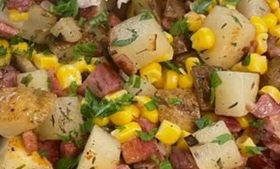 Ingredients:2 cups cooked corned beef, diced3 cups cooked potatoes, diced1 small onion, finely chopped1/2 green bell pepper, diced (optional)2 tablespoons butter or oil1/2 teaspoon salt1/2 teaspoon black pepper1/2 teaspoon paprikaInstructions:Heat the butter or oil in a large skillet over medium heat. Add the chopped onion and bell pepper if using. Cook for 3 to 4 minutes until softened.Add the diced potatoes to the skillet and cook for 5 to 7 minutes, stirring occasionally, until lightly browned.Stir in the diced corned beef. Season with salt, black pepper, and paprika. Press the mixture down gently with a spatula and let it cook undisturbed for 4 to 5 minutes to develop a crispy crust on the bottom.Flip sections of the hash and continue cooking for another 4 to 5 minutes until heated through and browned.Serve hot as a hearty breakfast or supper dish, perfect with fried or poached eggs on top.