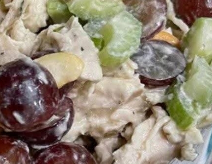 Ingredients3 cups cooked chicken, diced or shredded1 cup red seedless grapes, halved1/2 cup celery, finely chopped1/4 cup red onion, finely diced1/2 cup mayonnaise1 tbsp Dijon mustard1 tbsp lemon juice1/2 tsp salt1/2 tsp black pepper1/4 cup chopped pecans or walnuts (optional)InstructionsIn a large bowl, combine cooked chicken, halved grapes, celery, and red onion.In a separate bowl, whisk together mayonnaise, Dijon mustard, lemon juice, salt, and black pepper until smooth.Pour the dressing over the chicken mixture and stir gently until evenly coated.Fold in chopped pecans or walnuts if using.Cover and refrigerate for at least 1 hour before serving to allow flavors to blend.Serve chilled on croissants, sandwich bread, lettuce wraps, or with crackers.